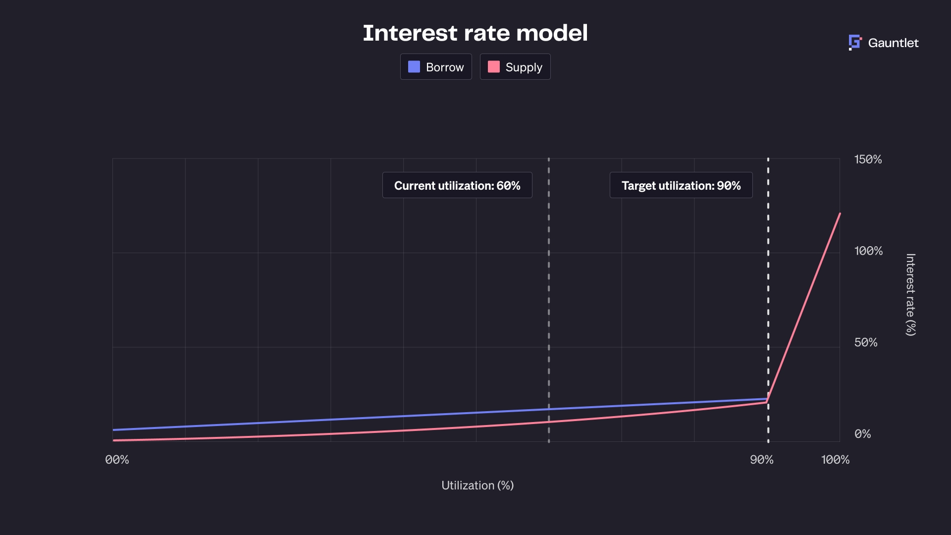 Utilization of any allocated market should not exceed 90% for an extended period of time (>48 hours). Beyond this optimal utilization point, both borrow and supply APYs increase rapidly, which, while beneficial for suppliers in the short term, compels borrowers to unwind positions, reducing long-term yield.