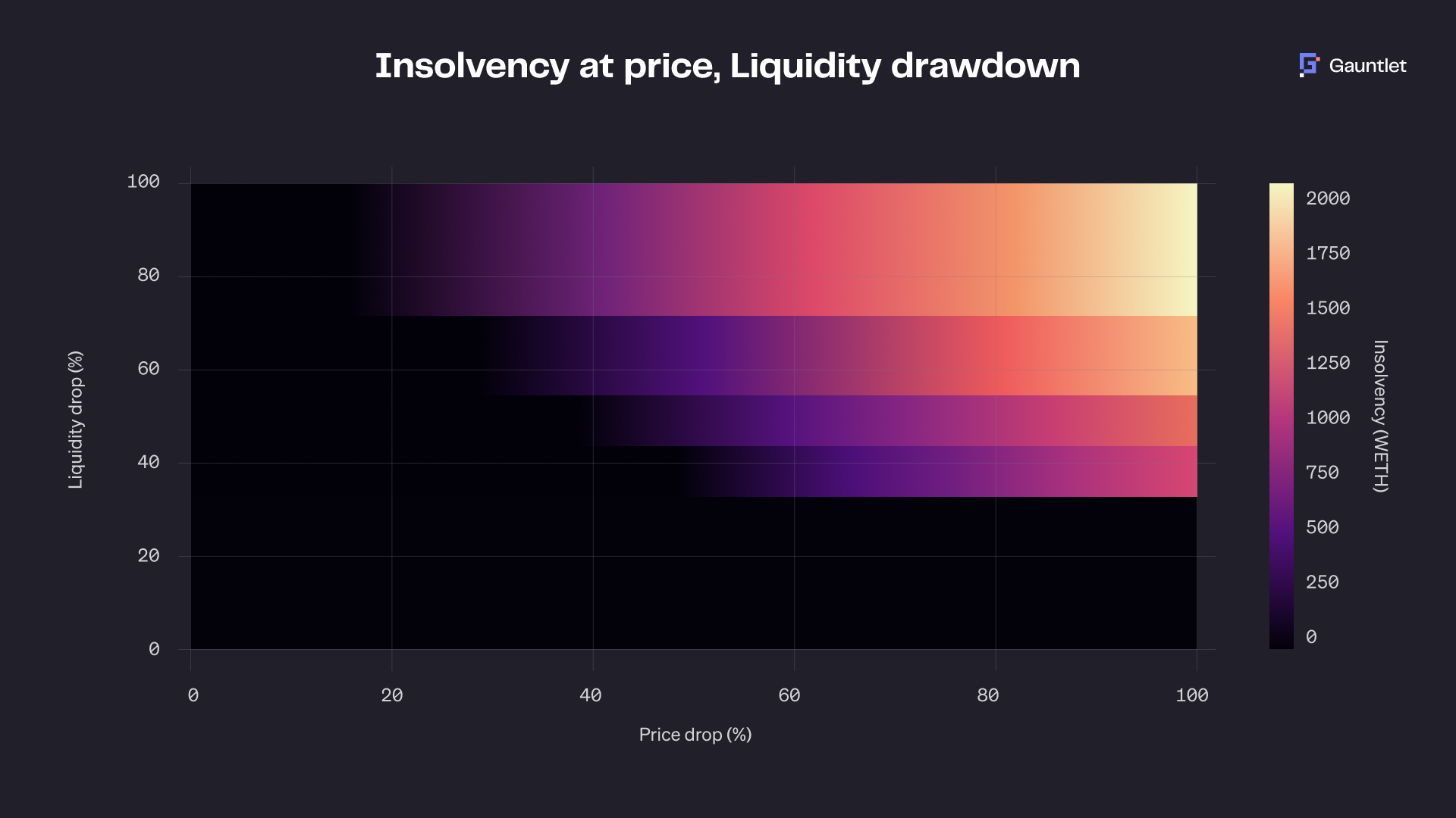 We reduce our position if a market's potential exposure under these stress conditions exceeds available liquidation capacity. This conservative approach applied to Gauntlet Prime and Balanced vaults, can maintain near-zero insolvency risk for our vaults, targeting insolvent debt below 10 basis points of total vault TVL even in extreme scenarios.